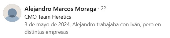 «Conozco a Iván desde hace muchos años. Siempre ha tenido una determinación y sensibilidad especial para trabajar y lograr los mejores resultados, es capaz de anticiparse y ver que es lo siguiente. Si está en el equipo o lo lidera, espera siempre lo mejor, porque así va a pasar. Ivan es un líder de ventas de forma innata…» …leer más